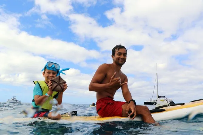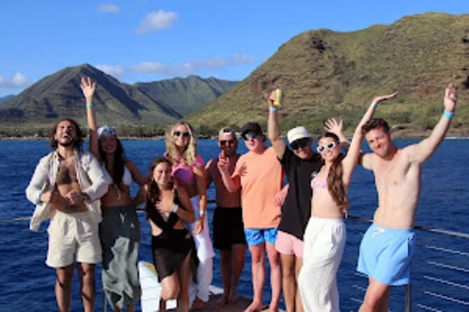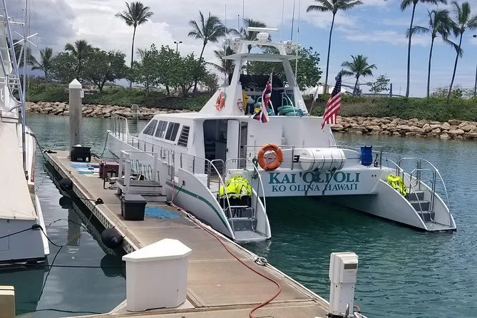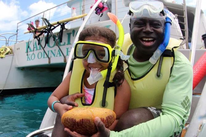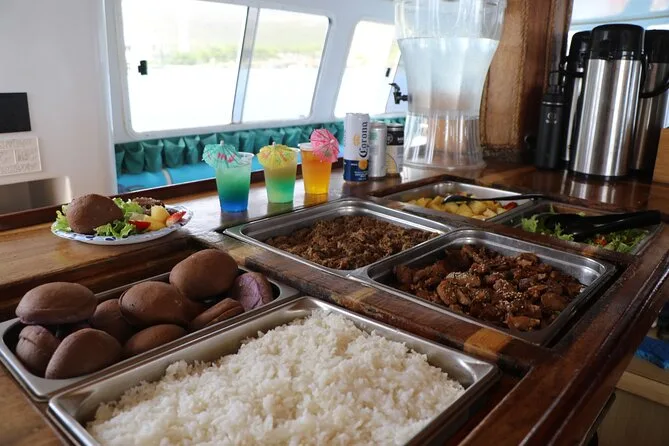Votre journée comprend un transfert aller-retour optionnel depuis votre hôtel à Waikiki jusqu’à la marina de Waianae où vous embarquerez sur un catamaran sur mesure avec un équipage local expert. Le matériel de snorkeling est fourni ainsi que de la crème solaire respectueuse des récifs et des comprimés de gingembre si besoin. Après avoir exploré la vie sous-marine avec les guides à disposition pour aider ou répondre aux questions, profitez des douches chaudes avant de vous installer pour un buffet hawaïen (adapté aux régimes alimentaires) accompagné de jusqu’à quatre boissons alcoolisées ou boissons non alcoolisées à volonté avant le retour à la côte.