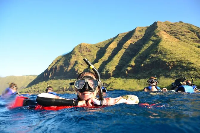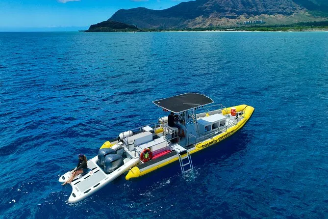 Votre journée comprend la prise en charge à l’hôtel (pour les départs matinaux), tout le matériel de snorkeling — masques correcteurs inclus — un déjeuner sandwich avec chips, des boissons non alcoolisées à bord, et les conseils de biologistes marins pendant que vous observez les dauphins sauvages au large de la côte ouest d’Oahu, avant de revenir à terre cheveux salés.