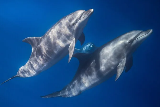 Il est possible d’apercevoir les dauphins sous l’eau si les conditions le permettent, mais nager directement avec eux n’est pas garanti pour respecter leur comportement.