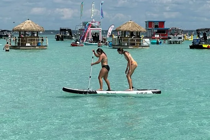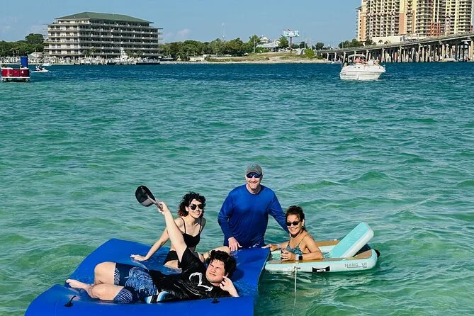 Votre journée comprend le départ du quai de Destin avec un capitaine local agréé, l’utilisation de deux paddles, quatre chaises flottantes, un grand tapis lilypad pour se détendre dans l’eau peu profonde, ainsi que de l’eau en bouteille, des gobelets et de la glace dans une glacière pour vos extras, avant de revenir après trois heures de fun au soleil.