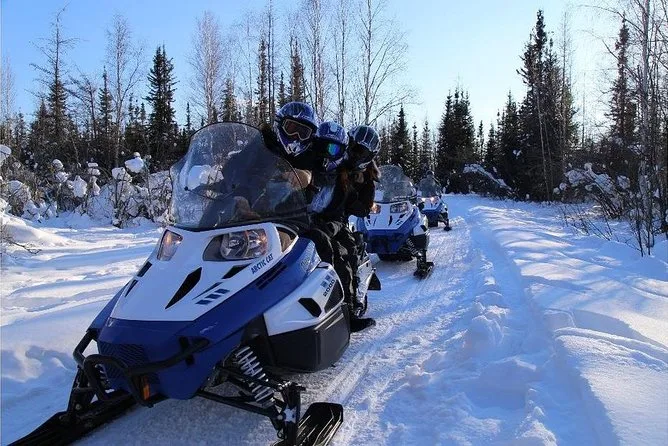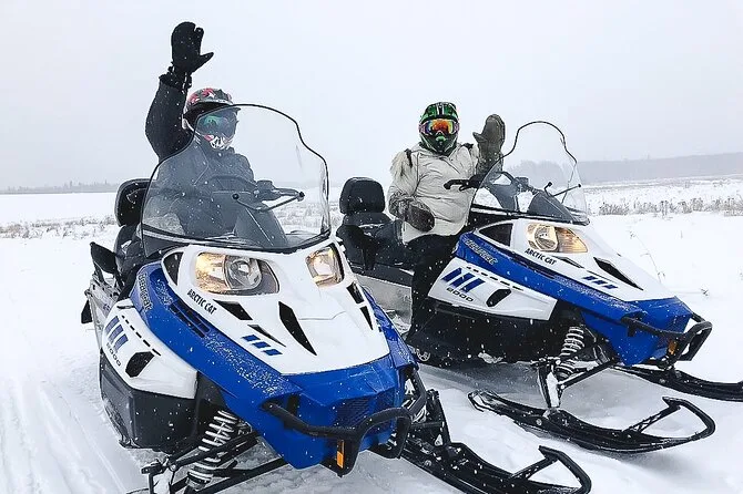 Prenez le guidon de votre propre motoneige près de Fairbanks, guidé par un local, pour traverser rivières gelées et sentiers enneigés autour des lacs Chena. Attendez-vous à l’air frais sur les joues, un chocolat chaud après la balade, et peut-être même des traces d’orignaux dans la neige — tout l’équipement est fourni sauf les vêtements. Une heure d’énergie hivernale pure à garder en mémoire.
