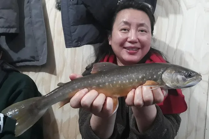 Votre journée comprend l’accès à une cabane deluxe chauffée avec électricité sur le lac gelé près de North Pole, tout le matériel de pêche fourni par votre guide local, un chocolat chaud fumant pour réchauffer vos mains pendant que vous attendez les touches, ainsi que des saucisses de renne grillées dans un pain — et bien sûr, le poisson frais que vous attraperez sera assaisonné et cuit sur place avant de repartir.