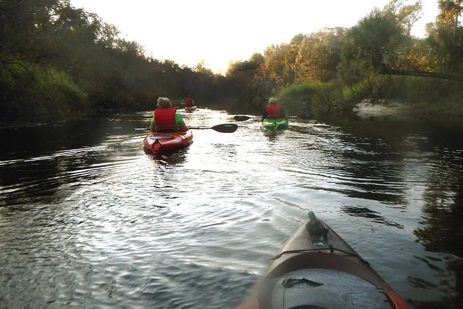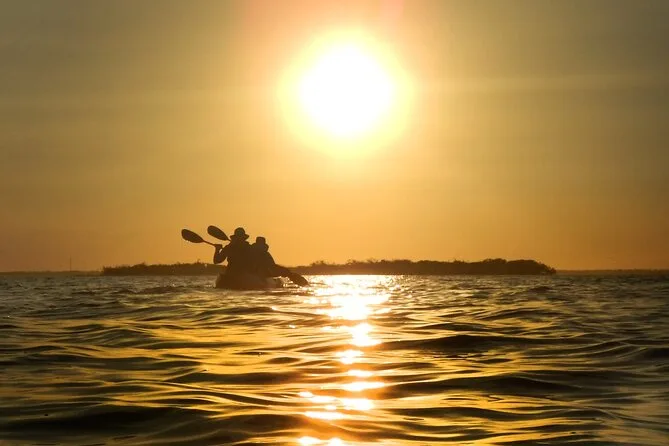 Votre soirée comprend une sortie kayak guidée de deux heures avec tout l’équipement — kayak, pagaie, gilet de sauvetage (PFD), sifflet de sécurité — et un guide local expérimenté qui partage histoires sur les lamantins et la faune aviaire avant de revenir à terre après la nuit tombée.