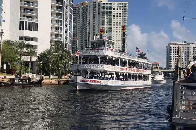 Votre billet inclut une croisière touristique commentée de 90 minutes sur la New River historique de Fort Lauderdale à bord du Jungle Queen, accessible en fauteuil roulant, avec toilettes à bord et possibilité d’acheter snacks et boissons par carte avant le retour au quai de départ.