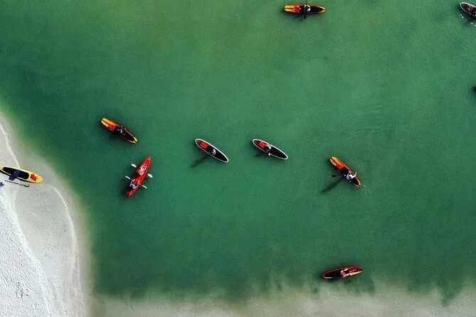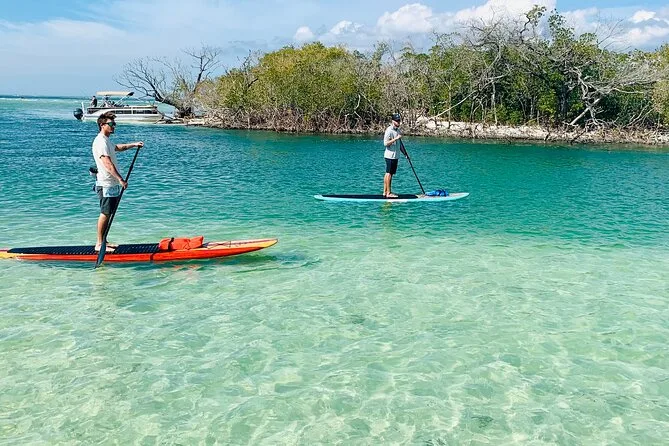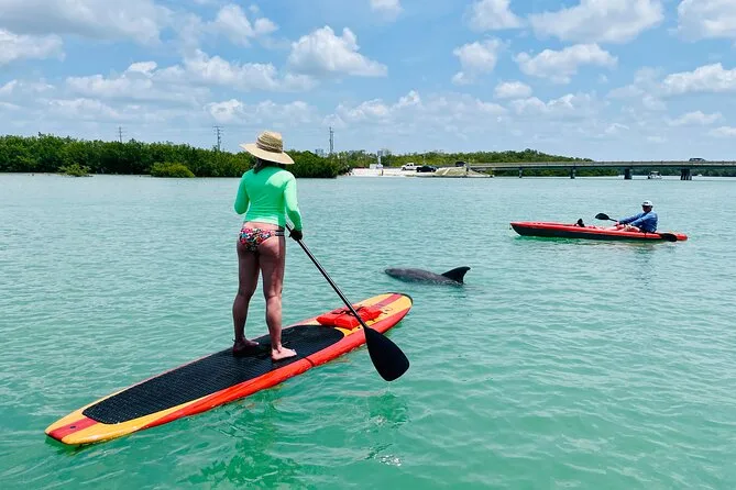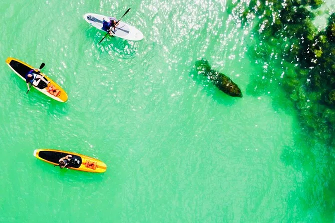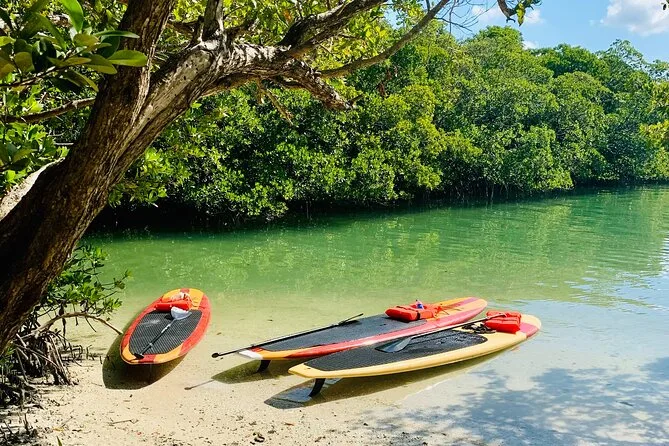Votre journée comprend planches, pagaies et gilets de sauvetage — il ne vous reste plus qu’à venir prêt à mouiller vos pieds et peut-être ramener un peu de sable. Vous serez guidé par un local qui connaît les meilleurs spots pour voir dauphins et lamantins, avec une pause détente sur la plage de sable blanc avant de repartir.