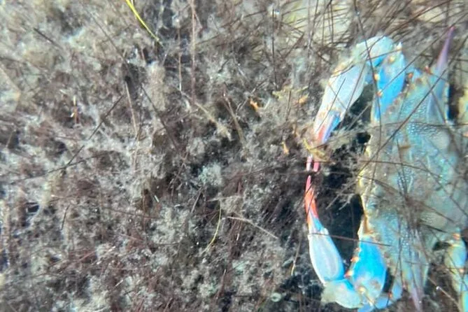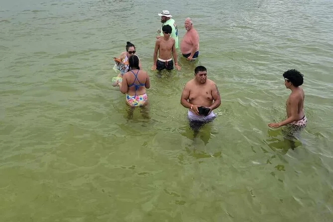Je ne m’attendais pas à ce que Crab Island soit aussi… animée ! Des bateaux partout, des rires, de la musique flottant sur l’eau. On ne s’est pas arrêtés mais on s’en est approchés pour bien voir avant de repartir plus loin dans le Golfe. Jamie nous a montré où les lamantins apparaissent parfois (pas de chance pour nous), et nous a raconté comment les locaux surveillent les requins — apparemment, ils sont plus timides qu’on ne le croit. Tout ça avait un côté décontracté, comme si on était avec des amis qui savent vraiment ce qu’ils font.