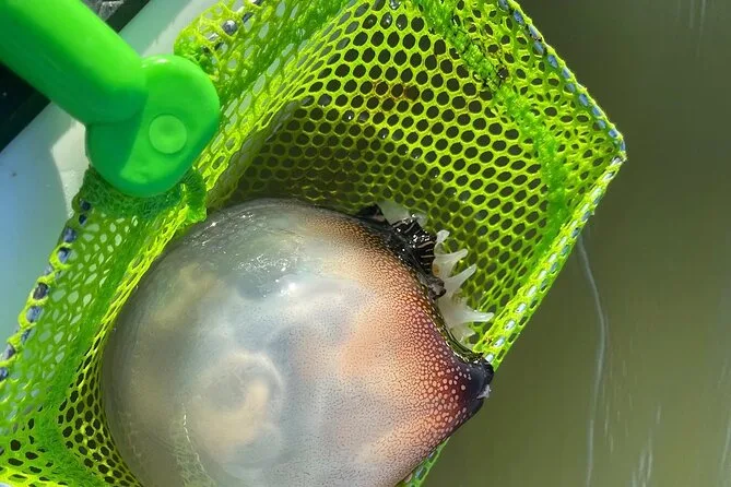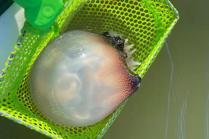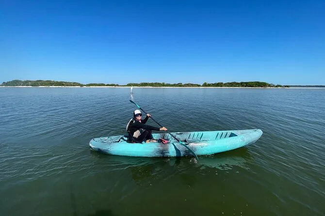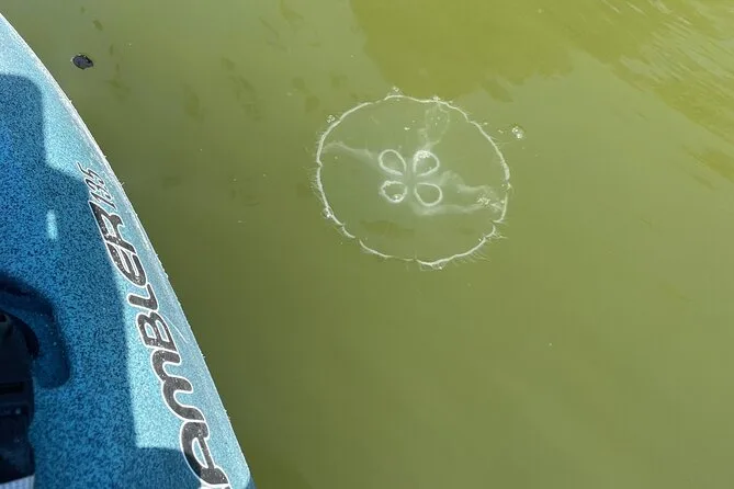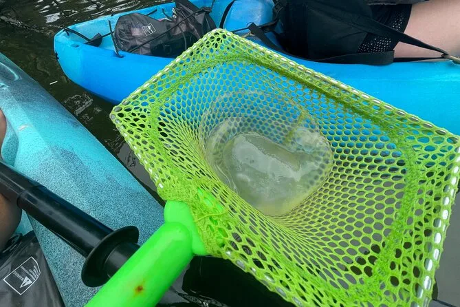 J’ai testé le paddle pendant une bonne demi-heure (jambes un peu tremblantes) avant de reprendre le kayak. Le soleil chauffait vite, mais une brise venue de Mosquito Lagoon rafraîchissait l’air. Nous avons dérivé près de racines emmêlées où de minuscules crabes bleus s’agitaient et où des aigrettes blanches nous observaient comme si on dérangeait leur routine matinale. À un moment, Jamie a pointé du doigt des cténophores flottant juste sous la surface — on croirait presque à un effet spécial tant ils pulsent de lumière quand on trouble l’eau.