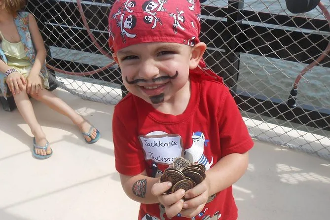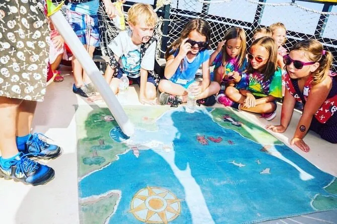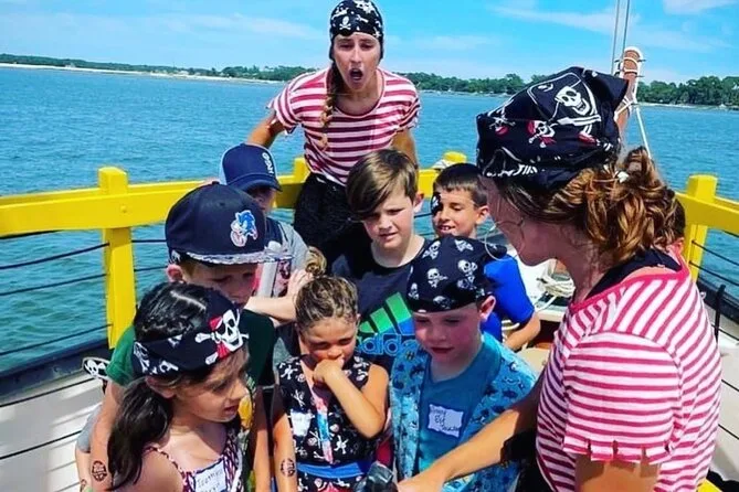 Votre aventure comprend un déguisement de pirate avec maquillage et tatouages temporaires pour les enfants, une croisière animée de 90 minutes à bord du Black Dagger autour de Hilton Head, une bataille épique de canons à eau contre Stinky Pete, et chaque enfant repart avec son propre trésor en souvenir avant de revenir à terre ensemble.
