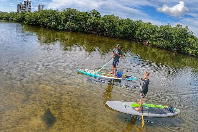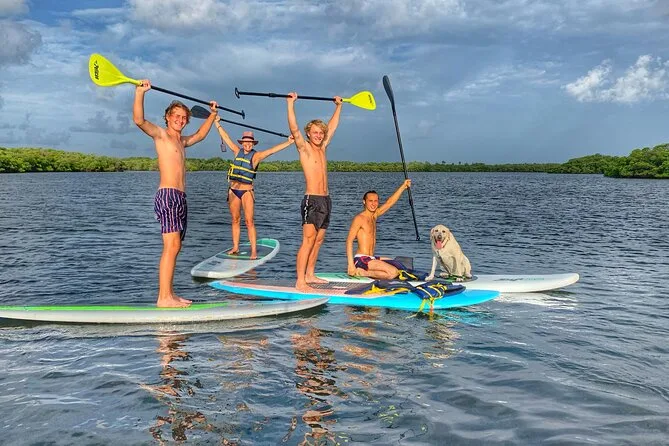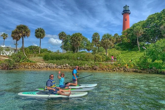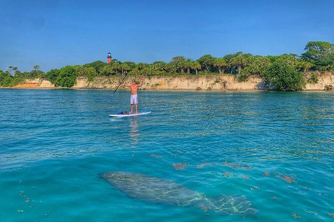 Votre journée comprend tout le matériel nécessaire pour pagayer — gilet de sauvetage, planche (avec place pour les petits), sifflet — ainsi que de l’eau filtrée. Un naturaliste local expérimenté guide votre groupe à travers les eaux de Jupiter tout en prenant des photos, que vous recevrez après (généralement sous trois jours), pour que vous puissiez simplement profiter de la balade et observer la faune.