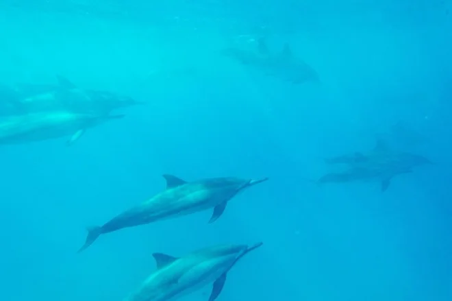 Les dauphins sont visibles toute l’année ; les baleines peuvent apparaître selon la saison, sans garantie.