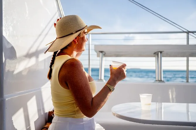 J’ai failli rater le bateau, littéralement. J’avais sous-estimé la distance entre mon hôtel et le Key West Historic Harbor (note pour moi-même : partir plus tôt la prochaine fois), du coup j’arrivais essoufflé au catamaran. L’équipage m’a juste souri et tendu un verre de sangria bien frais avant même que je puisse m’excuser. Ce premier verre, doux, frais et légèrement acidulé, m’a immédiatement détendu alors que nous quittions le quai. Le ciel était encore d’un bleu pâle, sans aucun signe de ce qui allait arriver.