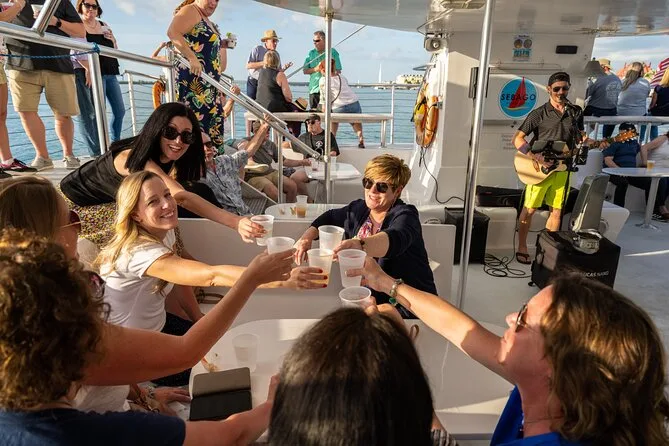 Votre soirée comprend l’embarquement au Key West Historic Harbor sur un catamaran moderne avec deux toilettes pour votre confort ; open bar illimité avec champagne, sangria, vins de boutique et cocktails ; sélection de tapas du chef comme le cocktail de crevettes ; ainsi que des concerts live de musiciens locaux pendant que vous admirez le coucher de soleil sur les eaux de l’île.