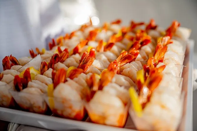 Oui, des tapas préparés par un chef sont servis à bord, dont un cocktail de crevettes et d’autres petites gourmandises.