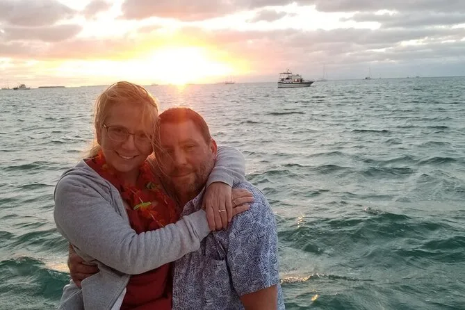 Montez à bord d’un tiki bar flottant dans le port de Key West, trinquez avec de nouveaux amis pendant que votre capitaine partage ses histoires sur les flottes de crevettes et les couchers de soleil, guettez ce flash vert insaisissable (sans garantie), puis rentrez doucement en admirant les quais historiques sous la nuit tombante — avec peut-être un sentiment de légèreté inattendu.