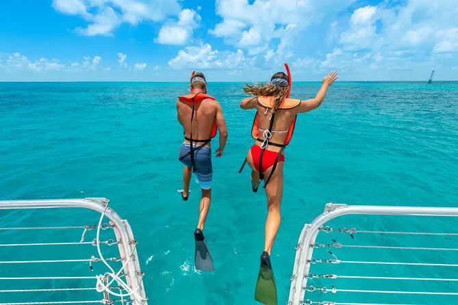 Votre journée comprend des trajets rapides en catamaran vers deux récifs uniques près de Key West avec tout le matériel de snorkeling fourni (et une réserve si besoin), de la crème solaire bio, l’accès aux toilettes au départ et à bord, ainsi que bières et vins offerts une fois la baignade terminée avant le retour à terre.