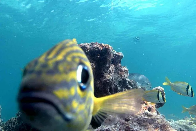 Après le kayak, on a navigué un peu plus loin pour faire du snorkeling près du récif Sand Key — Nick a vérifié la visibilité avant de choisir l’endroit, ce que j’ai apprécié, car je ne suis pas vraiment un expert comme Jacques Cousteau. L’eau était fraîche mais pas froide quand je me suis glissé dedans. Il a montré un vivaneau à queue jaune qui filait sous le corail, et une sorte d’éponge dont j’ai tout de suite oublié le nom (désolé Nick). Flotter là, avec la lumière du soleil qui dansait sur tout, c’était presque irréel… jusqu’à ce que le masque de quelqu’un s’embue et qu’on doive tous l’aider à le régler. Ça m’a ramené à la réalité — mais dans le bon sens.