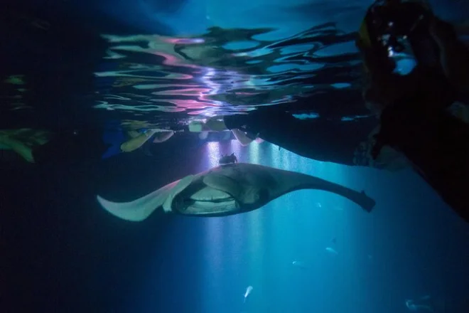 Une fois ancrés, on nous a distribué combinaisons et matériel de snorkeling (la mienne était un peu serrée, mais honnêtement, ça faisait du bien d’avoir chaud). L’équipage a installé des lampes de plongée puissantes qui perçaient l’eau noire — soudain, on voyait tout un tourbillon de plancton. On s’est glissés dans l’eau et on a flotté au-dessus des lumières, en tenant des planches en mousse. C’était étrange au début, comme si on flottait dans l’espace, puis quelqu’un a poussé un cri et pointé en bas. Une énorme ombre est remontée doucement et a fait une sorte de salto juste sous nous. J’ai juré que mon cœur s’est arrêté une seconde.