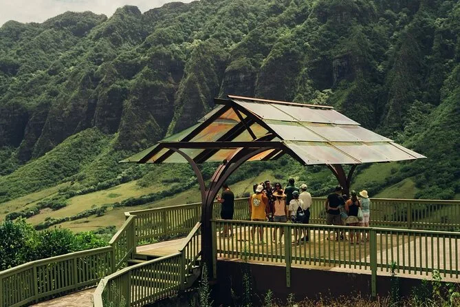 Votre journée inclut l’entrée au Kualoa Ranch avec un guide local expert qui partage histoires de tournage et récits culturels tout au long du parcours ; toutes les visites partent du centre des visiteurs principal après l’enregistrement—n’oubliez pas votre esprit d’aventure (et peut-être un imperméable).