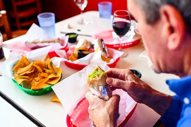 Votre journée comprend toutes les dégustations — burrito façon Mission, pan dulce ou cookie traditionnel, sandwich italien, clam chowder bien chaude (même si surprenante), glace locale (même fondante), dégustations de vins californiens et eau. Un guide local vous accompagne en petit groupe à travers les fresques et les histoires jusqu’à environ 14h ; vous n’aurez plus faim après ça.