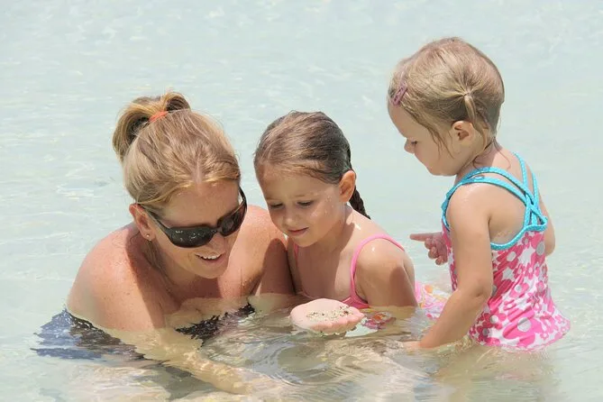 À mi-parcours de notre sortie de 2h30 en catamaran pour ramasser des coquillages, Mike a pointé une étendue de sable intacte devant nous — une île privée, posée là, presque trop parfaite. Le truc, c’est qu’on ne s’amarre pas directement sur la plage. On a jeté l’ancre à une centaine de mètres, dans cinq pieds d’eau tiède (qui m’a paru plus profonde quand j’ai sauté). Il faut nager jusqu’à la rive — Jamie a crié en touchant l’eau, puis elle a tellement ri qu’elle a failli lâcher sa bouée. Ils en ont plein à disposition, ainsi que des gilets de sauvetage pour ceux qui ne sont pas à l’aise dans l’eau. La plage ? Silencieuse, à part les mouettes qui se chamaillent au-dessus et ce bruit craquant quand on enfonce les orteils dans les coquillages. J’ai trouvé un coquillage bizarre qui trône encore sur mon bureau aujourd’hui.