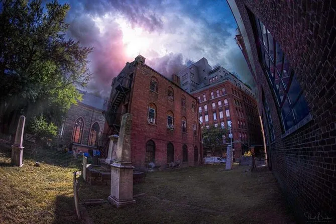 Nous avons bifurqué de Mulberry Street, là où le bruit de la ville s’adoucit un instant, et retrouvé notre groupe devant la vieille cathédrale St. Patrick. Le guide — Tommy, il me semble — nous a distribué de petites lanternes vacillantes dans ma main. Je ne pensais pas être nerveux, mais un silence s’est installé quand nous avons franchi les grilles en fer pour entrer dans le premier cimetière. L’herbe était clairsemée, encore humide de la pluie de la veille, et l’air sentait la pierre mouillée et quelque chose de vieux — comme un vieux livre oublié sur une étagère.