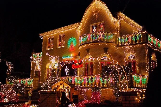 Votre soirée comprend la prise en charge en bus près de Times Square à Manhattan, l’accompagnement d’un guide local expert tout au long du trajet, une pause toilettes avec vue sur le coucher de soleil au-dessus du fleuve Hudson et de la Statue de la Liberté (si le temps le permet), une balade parmi les célèbres illuminations de Noël de Dyker Heights, puis un dernier arrêt au Brooklyn Bridge Park pour des photos de la skyline illuminée avant le retour à Manhattan.
