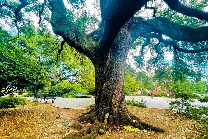 Votre temps comprend une balade guidée par une Grande Prêtresse Vodou à travers Congo Square, le parc Louis Armstrong (avec rituels d’ancêtres près de l’arbre Egun) et le site historique de Marie Laveau—le tout entièrement accessible aux fauteuils roulants et poussettes, pour que chacun puisse profiter confortablement du début à la fin.