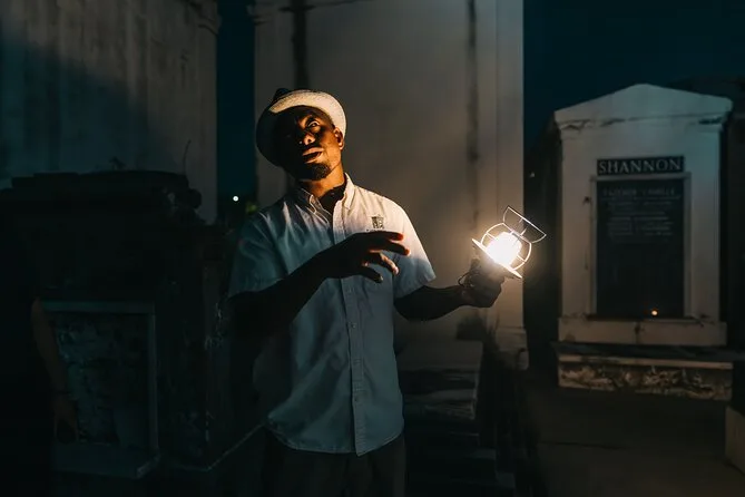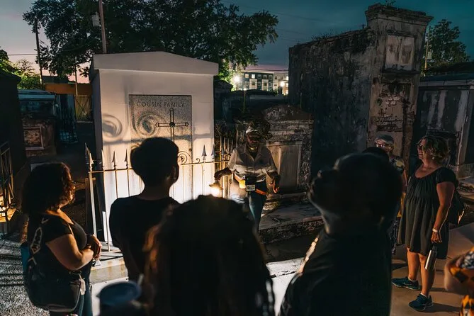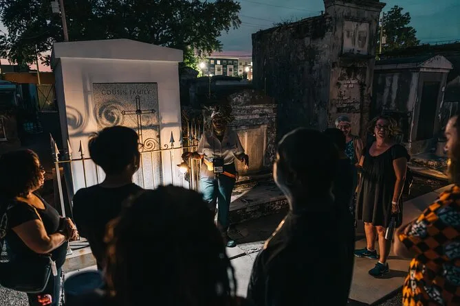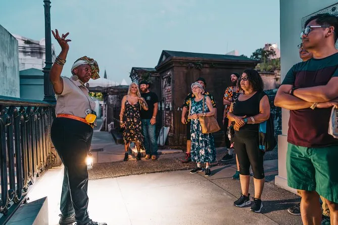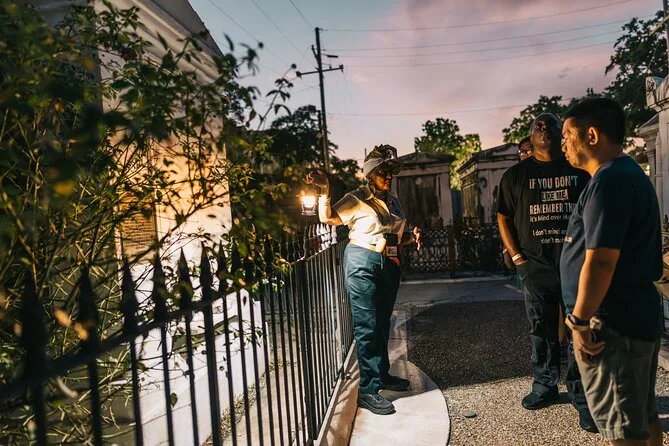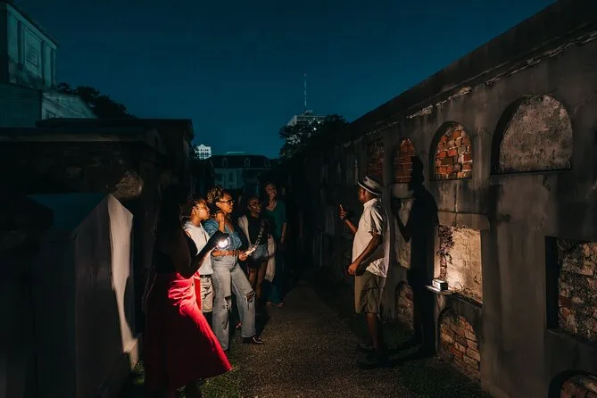 Votre soirée comprend l’entrée au cimetière St. Louis No. 1 après la tombée de la nuit, toutes les taxes incluses, ainsi qu’une visite guidée menée par un local passionné qui partage des histoires vraies—pas des légendes—avec votre petit groupe avant de revenir à Basin Street.