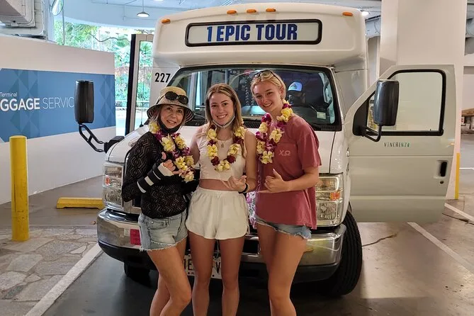 Votre journée comprend la prise en charge directe à l’hôtel ou au quai de croisière partout à Waikiki, un transport climatisé pour découvrir les incontournables d’Oahu comme le temple Byodo-In et la cascade de Waimea (avec toutes les entrées incluses), ainsi que de nombreuses pauses gourmandes avec des macadamias frais ou des douceurs de boulangerie avant le retour en soirée.