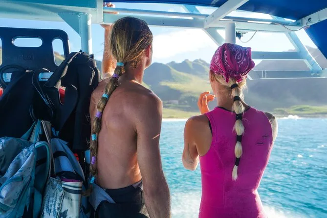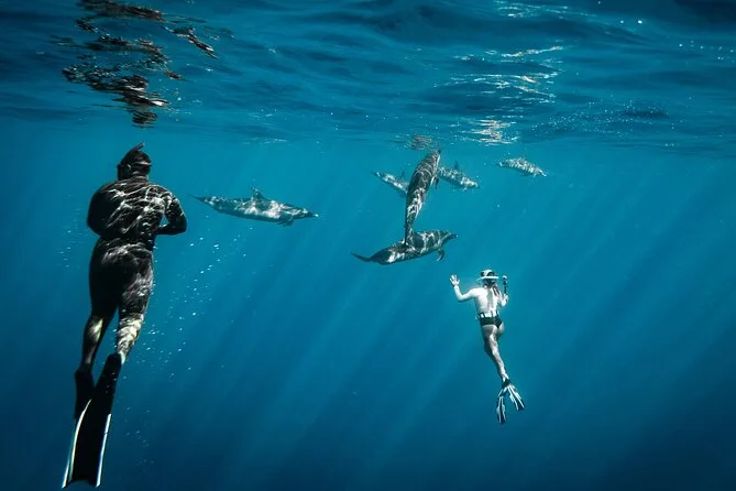 Plonge dans les eaux bleues d’Oahu pour nager avec des dauphins sauvages guidé par un local, puis savoure un déjeuner simple pour te réchauffer sur le pont. Snorkeling avec les tortues au programme, et balade en speedboat le long de la côte ouest spectaculaire. Prépare-toi à rire, à sentir le sel sur ta peau, et à vivre des moments qui te resteront longtemps.
