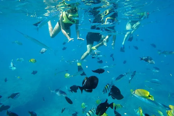 La durée exacte n’est pas précisée mais compte plusieurs heures avec navigation et arrêts snorkeling.
