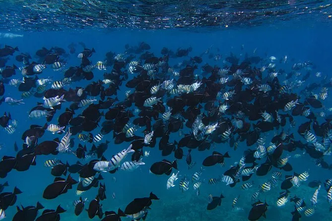 Ta journée comprend la prise en charge en véhicule climatisé sur la côte ouest d’Oahu, tout le matériel de snorkeling (pas besoin d’apporter masque ou palmes), de l’eau en bouteille à volonté, du thé vert ou chocolat chaud pour te réchauffer après la baignade. Le déjeuner est prévu — sandwich dinde sauf demande spéciale à l’avance — et des chips pour caler les petites faims entre deux plongées.