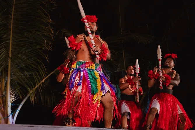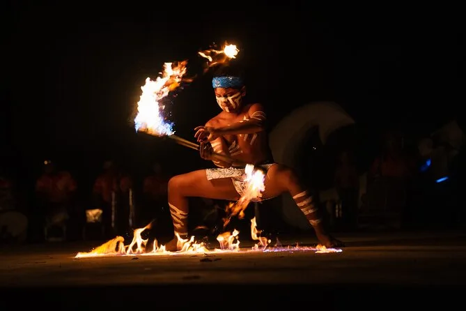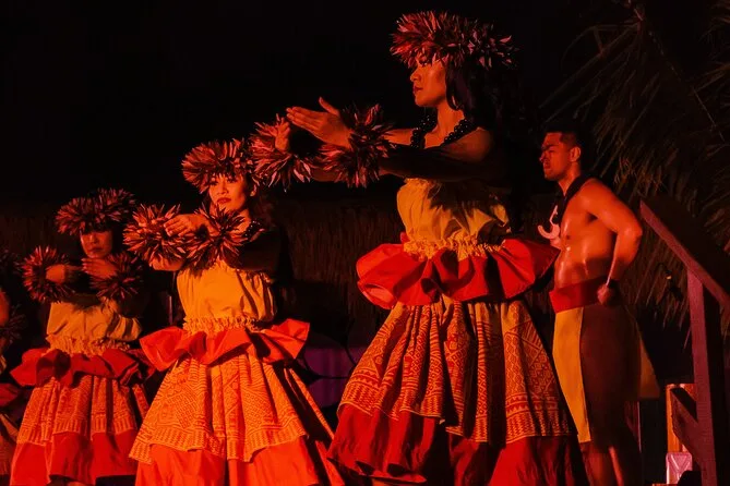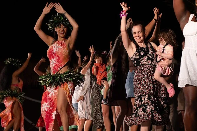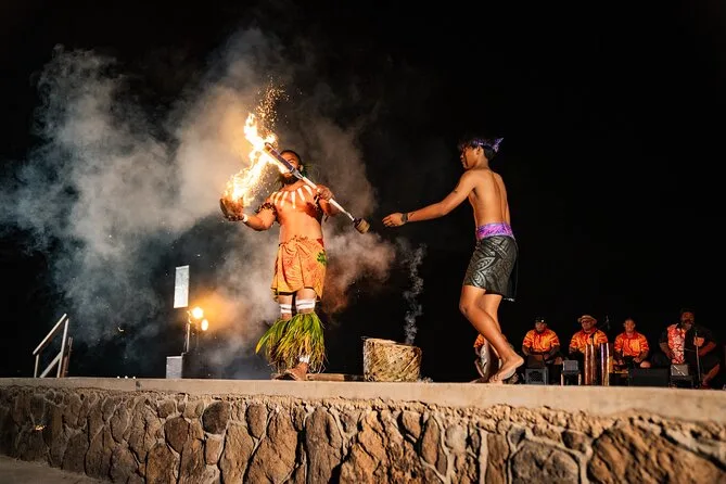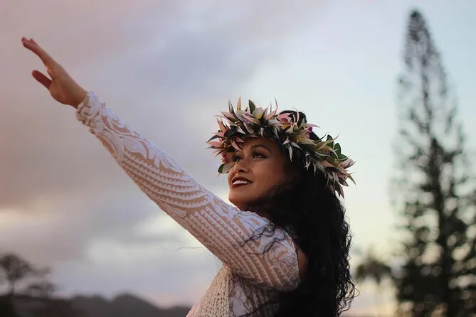 Votre soirée comprend l’accès au spectacle le plus impressionnant d’Oahu avec danses polynésiennes et performances au couteau de feu ; des activités culturelles pratiques comme le tressage ou la cuisine dans la seule cuisine umu complète de l’île ; un buffet à volonté avec des spécialités locales ; ainsi que des photos numériques avec des armes polynésiennes authentiques envoyées directement sur votre téléphone — le tout avec une vue imprenable sur Honolulu.