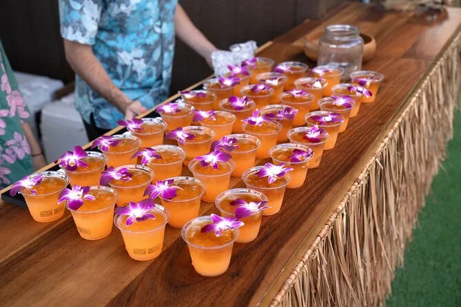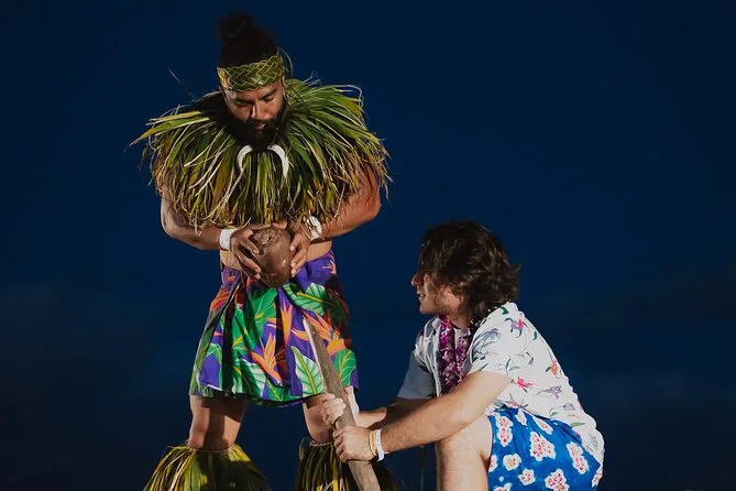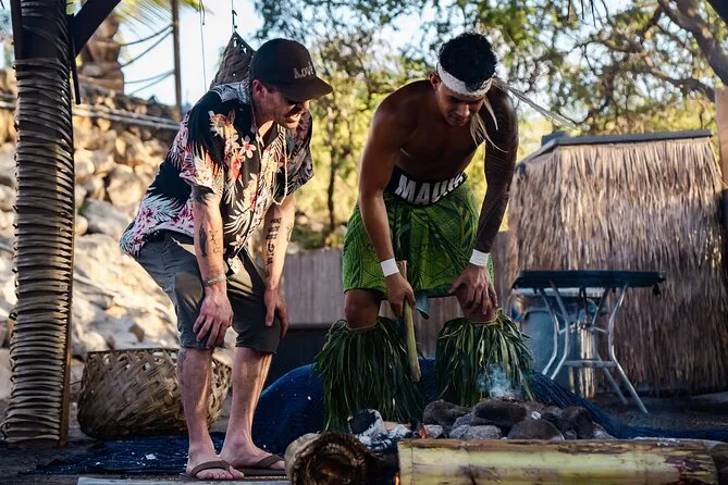 Ce luau met l’accent sur l’histoire des guerriers polynésiens, avec des activités pratiques comme la cuisine et le tressage, une expérience dans la cuisine umu et un service de boissons à table.
