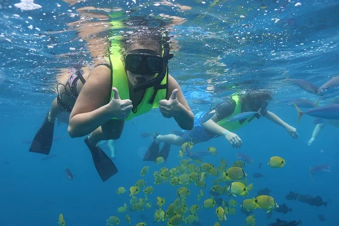 Votre journée comprend la prise en charge aller-retour depuis certains hôtels de Waikiki si vous le souhaitez, tout le matériel de snorkeling (masque, palmes, gilet), un déjeuner avec sandwich (dinde, beurre de cacahuète ou wrap aux épinards) et chips après la baignade, beaucoup de temps pour observer les dauphins le long de la côte ouest d’Oahu, ainsi que la possibilité de faire du kayak, du paddle ou de descendre un grand toboggan aquatique avant le retour, le tout rythmé par un spectacle de hula sur le pont.