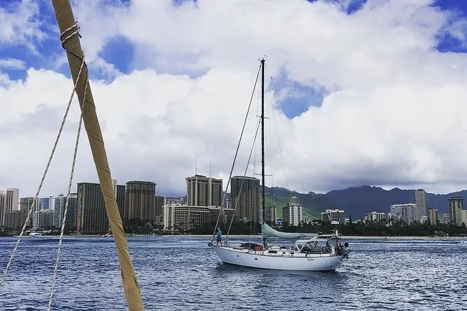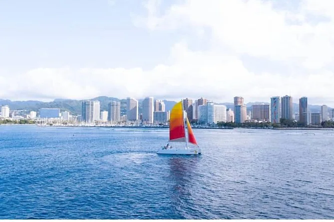 Après, on est remontés à bord, les serviettes partout, les cheveux pleins de sel. Ils avaient prévu des snacks — rien de compliqué, mais parfait après la baignade : des morceaux d’ananas si sucrés qu’ils piquaient presque la langue. On a navigué le long du bord de Diamond Head, le vent tirant sur tout ce qui ne tenait pas, à la recherche des dauphins à bosse (pas de chance cette fois), pendant que quelqu’un à l’avant scrutait l’horizon avec des jumelles pour repérer des baleines. Les gens s’étiraient sur les filets ou se penchaient simplement par-dessus bord ; je me suis surpris à regarder le skyline de Waikiki s’éloigner derrière nous. Il y a ce moment où on ne sait plus si on est plus fatigué ou heureux — peut-être un peu des deux ? Je repense encore aux yeux de cette tortue.