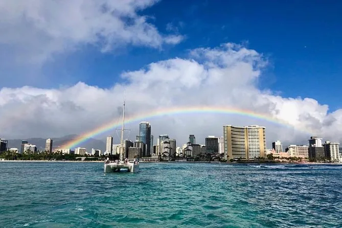 Votre journée comprend l’embarquement pieds nus depuis la plage de Waikiki, tout le matériel de snorkeling (masque, palmes, gilet), la crème solaire respectueuse des récifs, l’accompagnement d’experts locaux sur le pont et dans l’eau à Turtle Canyon, un traitement contre le mal de mer si besoin, un espace sec pour vos affaires, des snacks offerts après la baignade, ainsi que des boissons alcoolisées ou non disponibles à l’achat pendant la navigation autour de Diamond Head avant le retour à terre.