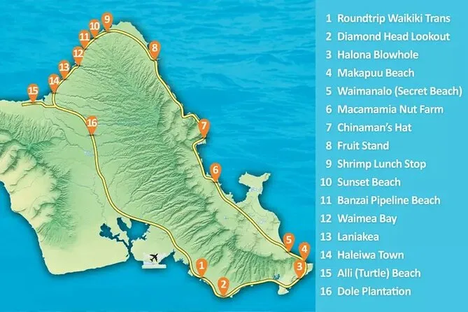 Le tour commence et finit à Waikiki avec une prise en charge pratique à quatre endroits différents.