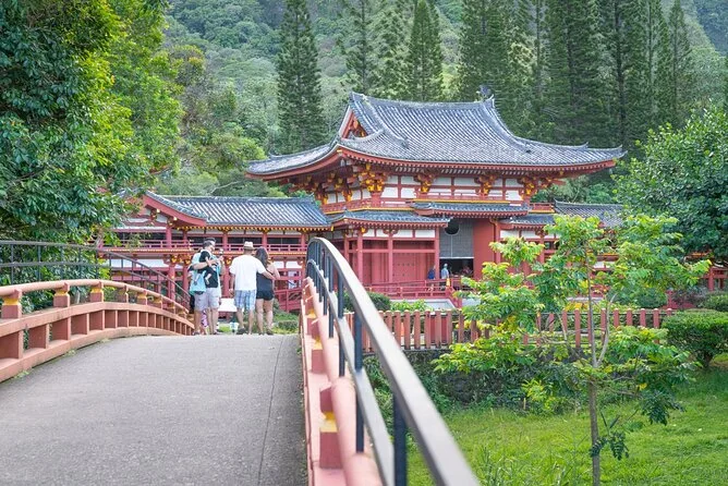 Parcourez Oahu avec un guide local : des pentes volcaniques de Diamond Head aux jardins paisibles du temple Byodo-In, en passant par la piscine naturelle de Waimea Valley (baignade possible selon météo). Goûtez la vraie glace pilée hawaïenne à Haleiwa et terminez par un Dole Whip à la plantation avant de revenir – des moments qui restent longtemps en mémoire.