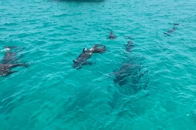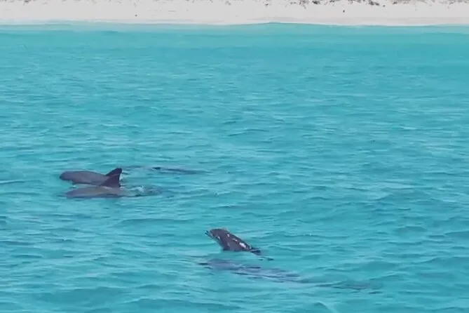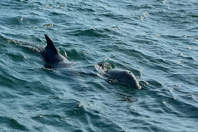 Le bateau avançait assez lentement pour qu’on puisse vraiment observer tout autour — des enfants qui faisaient signe depuis d’autres embarcations, la lumière du soleil qui dansait sur l’eau. Quelqu’un a repéré une nageoire et tout le monde s’est levé, penché par-dessus la rambarde (moi y compris). Là, juste devant nous : des dauphins à gros nez, qui glissaient tranquillement à nos côtés comme s’ils n’avaient nulle part ailleurs où aller. Pas de saut spectaculaire, juste une curiosité mutuelle. Mike nous a raconté un peu leur vie autour de Shell Island et comment parfois, avec un peu de chance, on peut les voir chasser en groupe.
