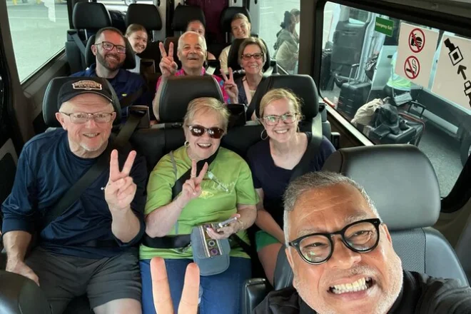 Je regardais par la fenêtre en quittant le port — les palmiers qui défilaient, cette légère odeur de crème solaire encore sur mes mains. Le trajet jusqu’à l’aéroport d’Orlando n’était pas long, mais c’était comme une pause tranquille avant la suite du voyage. Au terminal B-10, il nous a aidés à décharger nos affaires et a vérifié qu’on n’avait rien oublié (j’ai failli laisser ma veste). Rien de tape-à-l’œil, juste simple, exactement ce qu’il fallait après une croisière.