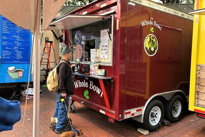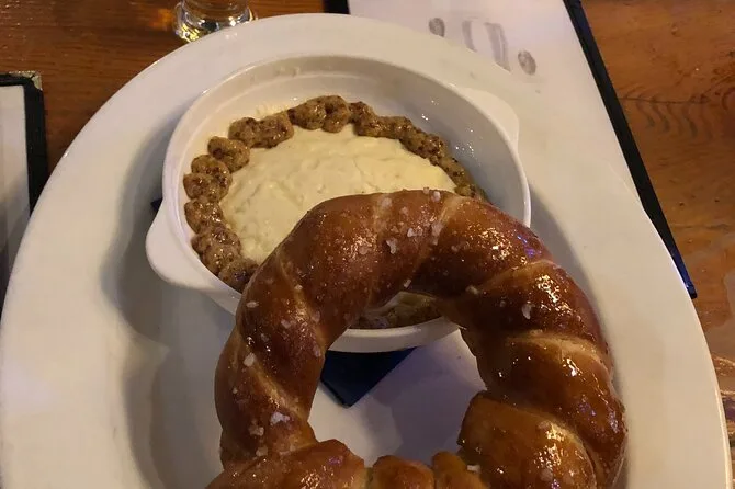 Votre journée comprend les six dégustations — comme le sandwich japonais au miso savoureux, les shrimp and grits du Sud ou les tomates vertes frites pour les végétariens, un bretzel tiède et moelleux avec des sauces crémeuses dans une brasserie emblématique (avec option dégustation de bière artisanale), de l’eau tout au long du parcours, un plat secret spécial dévoilé le jour même, et pour finir une tarte de saison sans gluten ni lactose d’une boulangerie locale avant de reprendre votre exploration du centre-ville.