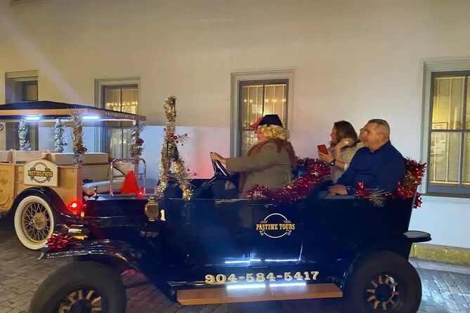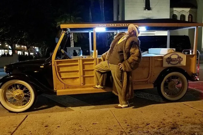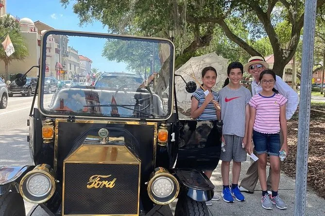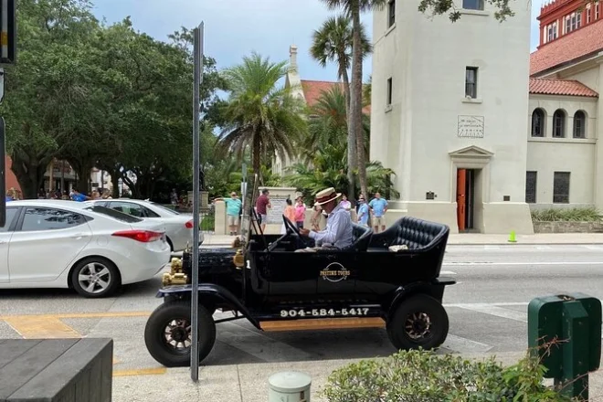 Votre journée comprend un transport privé à travers Saint Augustine pour votre groupe de 4 personnes maximum, avec un guide local habillé à la mode des années 1920 qui partage des histoires tout au long du parcours — montez à bord et plongez dans l’histoire vivante de la ville pendant que les passants vous saluent.