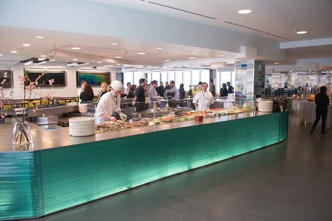 Oui, deux options : le restaurant Seaglass avec vue sur la baie et le café Seismic Joint (horaires variables).