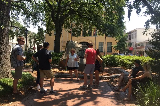 Votre journée comprend une balade guidée par un expert local à travers les squares et monuments les plus historiques de Savannah — de Wright Square à Forsyth Park — avec plein d’histoires le long de sentiers ombragés sous des chênes verts couverts de mousse espagnole. Des bancs sont disponibles pour faire une pause ; pensez à prendre des chaussures confortables et un parapluie si la météo semble incertaine.
