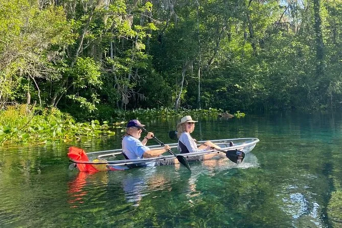Votre journée comprend l’utilisation de kayaks tandem transparents avec pagaies et sièges, ainsi que des sacs étanches pour vos affaires. Tout l’équipement de sécurité — gilets de sauvetage et sifflets — est fourni pour que vous profitiez pleinement des eaux riches en faune de Silver Springs en toute sérénité.