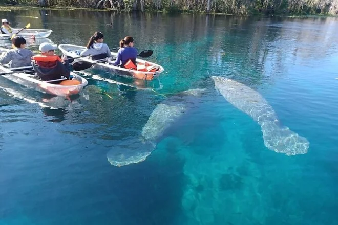 L’eau est d’une clarté exceptionnelle — l’une des plus transparentes de Floride — offrant une vue parfaite sous l’eau depuis les kayaks ou paddles transparents.