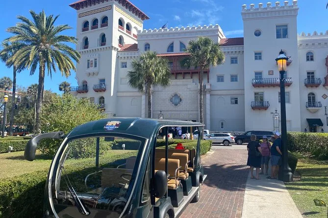 Parcourez les rues historiques de St Augustine en voiturette de golf, avec des arrêts pour écouter des histoires au Castillo de San Marcos et sous les chênes moussus près de Flagler College. Un guide local partage légendes et sourires, vous faisant remarquer des détails comme des vitraux lumineux ou le son lointain des cloches, qui restent gravés longtemps après.