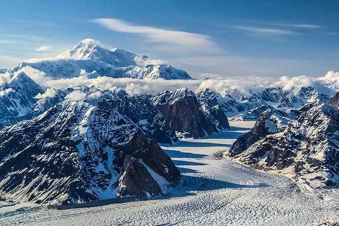 Depuis Talkeetna, survolez rivières et glaciers sauvages de Denali avec un pilote qui commente en direct. Option unique : atterrissage sur le glacier Kahiltna. Ressentez le vent là où peu de gens posent les pieds, écoutez les histoires des locaux, et emportez avec vous ce silence magique au-dessus des nuages.