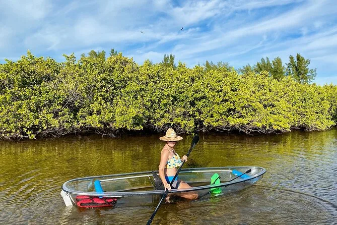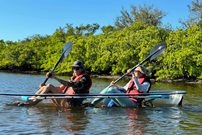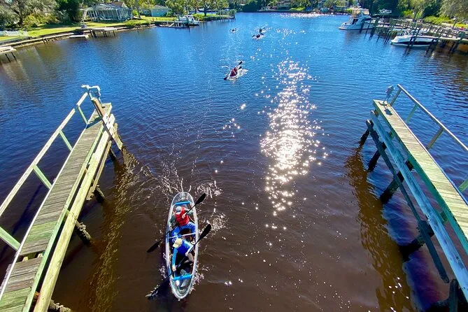 Votre journée comprend l’utilisation de kayaks transparents avec pagaies et sièges confortables, gilets de sauvetage et sifflets pour la sécurité, ainsi que des sacs étanches pour protéger vos affaires — le tout guidé par un expert de Tarpon Springs.